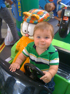 The love affair began with the Garfield train at the mall and soon he was splitting his affection between Garfield and the Winnie the Pooh plane at the grocery store. Now, Garfield is old news, and he has moved on to the carousel. Conveniently, the carousel costs twice the money and requires me to walk around the same circle for two minutes, causing some mild dizziness and nausea.